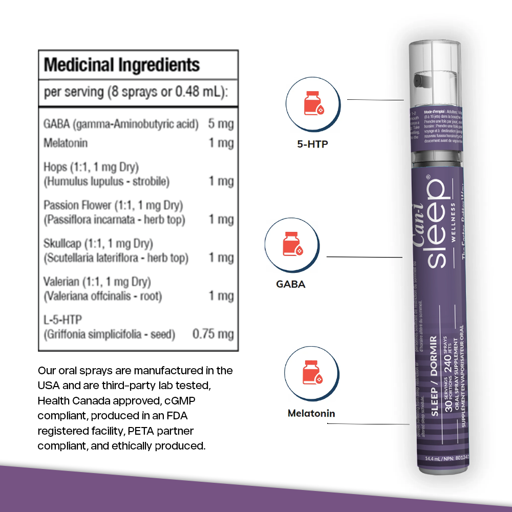 Can-i Sleep helps to reduce the time it takes to get to sleep, improves total sleep quality and increases total sleep time so you can wake up refreshed.